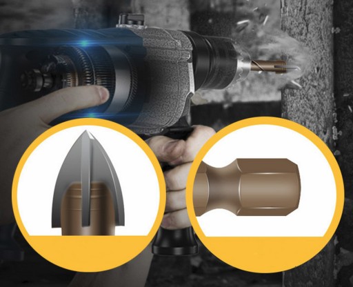 Zestaw wierteł wielofunkcyjnych z 4 ostrzami z węglika spiekanego.