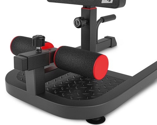 Ławka charakteryzuje się mocną i stabilną konstrukcją. Stelaż został wykonany ze stalowych profili. Blokady na stopy i łydki są pokryte miękką gąbką. Profile ławki są pomalowane proszkowo na satynowy czarny kolor. Dzięki 4 przyssawkom umieszczonym na spodzie służą dopasowaniu do podłogi i stabilność w trakcie ćwiczeń.
