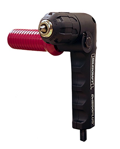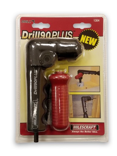 Drill90PLUS od Milescraft to uniwersalna przystawka kątowa idealna do wiercenia w trudno dostępnych miejscach tuż przy belkach podłogowych, pomiędzy ścianami, a także do wielu innych zastosowań.