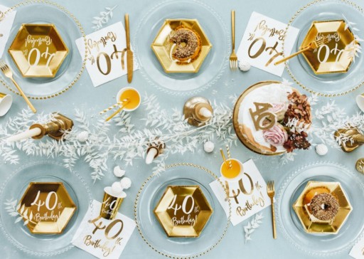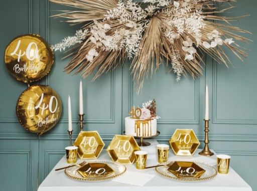 Набор чашек, тарелок и трубочек "Золотой день рождения" 40 лет