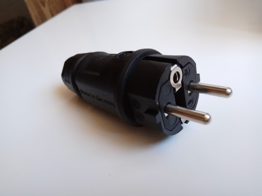 Niemiecki wtyk zasilający schuko.