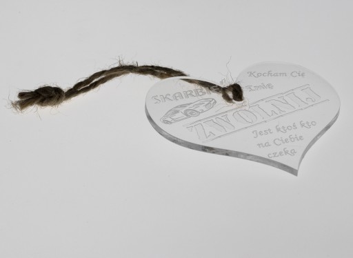 ZAWIESZKA JEST WYKONANA Z MATERIAŁU PRZEZROCZYSTEGO A KOLOR GRAWERUNKU NA NIEJ JEST ZBLIŻONY DO BIAŁEGO