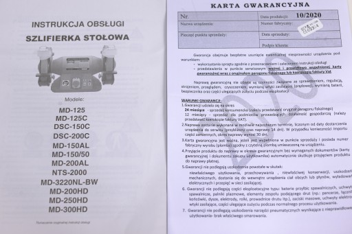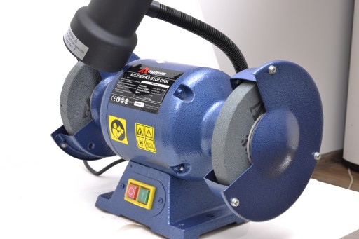 - szlifierka wyposażona została w kamienie szlifierskie o wymiarach 150x16x12,7mm. Szlifierka jest modelem kombinowanym, dostarczanym ze ściernicą drobnoziarnistą i kamieniem do ostrzenia.