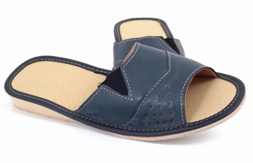 Zewnętrzna warstwa wykonana jest ze skóry ekologicznej w kolorze granatowym ze wstawk gumki na boku dla regulaji podbicia!!!