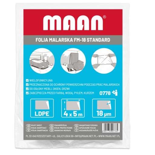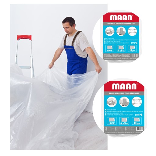 FOLIA BUDOWLANA PLANDEKA MALARSKA OCHRONNA GRUBA PLUS 4X5M UNIWERSALNA 20M2