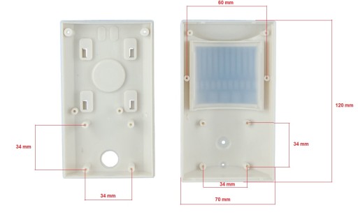 Obudowa typu PIR do kamer płytkowych wykonana z tworzywa sztucznego.