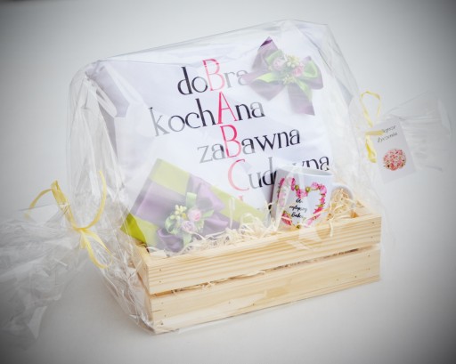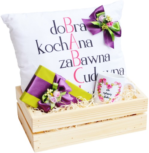 Zapraszamy do zakupu oryginalnego i praktycznego prezentu dla Babci w postaci oryginalnego zestawu. W drewnianej skrzynce znajdziesz super poduszkę, kubek oraz pyszne czekoladki Toffifee.