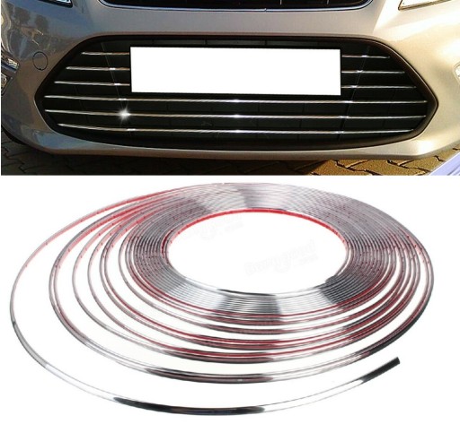 Materiał z jakiego wykonany jest produkt to tworzywo sztuczne z powłoką chromowaną. Na powierzchni chromowanej najczęściej znajduje się niebieska folia ochronna którą należy zerwać po naklejeniu listwy.