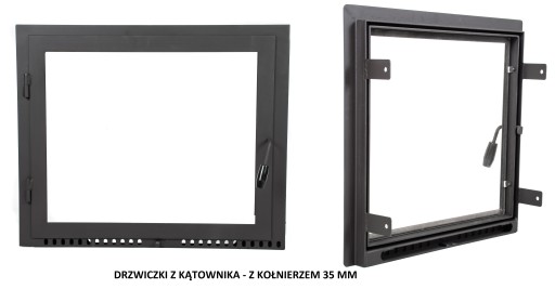 ✔️ DRZWICZKI Z KOŁNIERZEM Z KĄTOWNIKA- w zależności od wielkości wykonane są z kątownika stalowego 30x30 / 35x35 / 40x40 mm o GRUBOŚCI AŻ 5 MM , posiadają prosty, klasyczny kołnierz od góry i po bokach o szerokości 35 mm. Kołnierz ten "nachodzi" na ścianki kominka, doskonale maskując ewentualne uszczerbki w cegle, szczeliny itd.