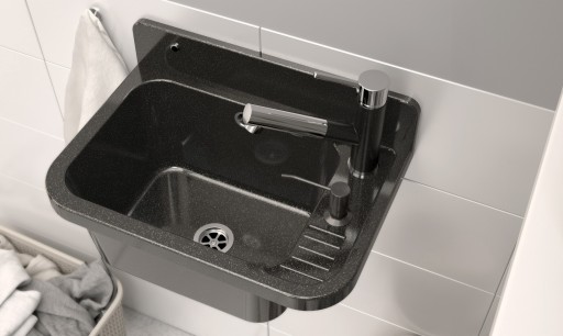 ZLEW GOSPODARCZY KOMORA CZARNA PRALNIA GARAŻ KRAN WYCIĄGANA WYLEWKA PARON