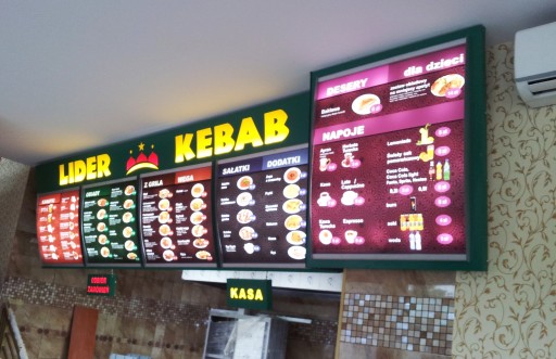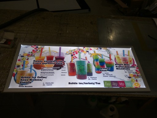 - menu board z licem wypukłym w modułach wysokość 50/60/70/80cm długość (50, 75, 100, 125, 150cm) lub inna długość modułu wg Twojego wymiaru