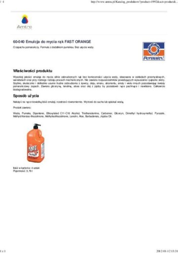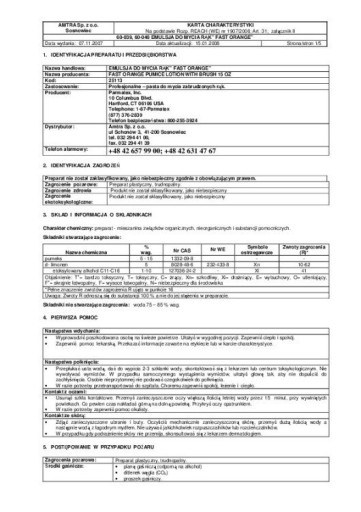 O zapachu pomarańczy. Formuła z dodatkiem pumeksu. Bez użycia wody. WŁAŚCIWOŚCI PRODUKTU: Wysokiej jakości emulsja do mycia silnie zabrudzonych rąk bez konieczności użycia wody, stosowana w zakładach przemysłowych, warsztatach oraz przy różnego rodzaju pracach mechanicznych. Nie zawiera rozpuszczalników powodujących wysuszanie i pękanie skóry. Szybko, skutecznie i delikatnie usunie trudne zabrudzenia z żywicy, oleju, smaru, atramentu, smoły i wielu innych pozostawiając świeży pomarańczowy zapach. Zawiera glicerynę, lanolinę, aloes oraz olej z jojoby by pozostawić ręce pachnące i nawilżone. Całkowicie biodegradowalna. SPOSÓB UŻYCIA: Nałożyć na ręce niewielką ilość emulsji, rozetrzeć równomiernie. Wytrzeć do sucha lub spłukać wodą. Produkt zawiera: Woda, Pumeks, Dipentene, Ethoxylated C11-C16 Alcohol, Triethanolamine, Carbomer, Gliceryn, Dimethyl hydroxymethyl, Pyrazole, Methylchloroiso-thiazolinone, Methylisothiazolinone, Lanolin, Aloe, Barbadensis, Jojoba Oil.