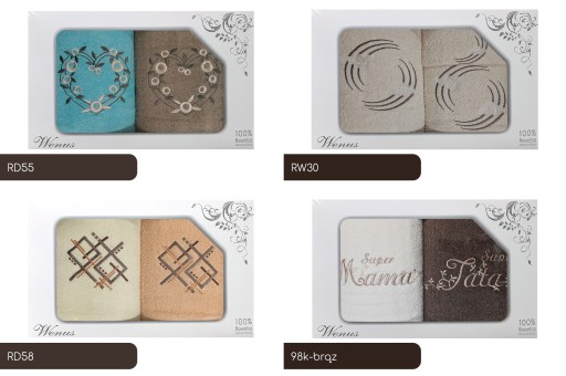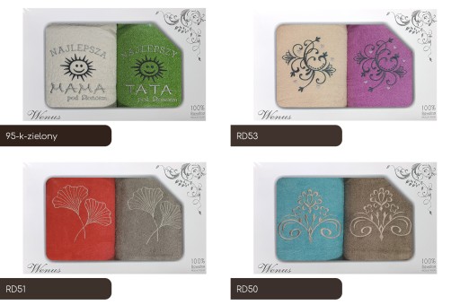 Zapraszamy do zakupu Kompletu Ręczników Frotte Wenus. Ręczniki wykonane są z najwyższej jakości 100 % bawełny. Oryginalne wzornictwo oraz duży wybór kolorów, pozwala na estetyczne urządzenie każdej łazienki. Ręczniki są miękkie i bardzo przyjemne w dotyku, a dekoracyjne opakowania czynią z nich idealny pomysł na prezent.