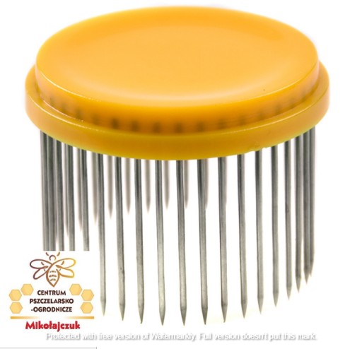 Kołpak do izolowania matek pszczelich. Posiada specjalne igły do wbicia go w plaster.