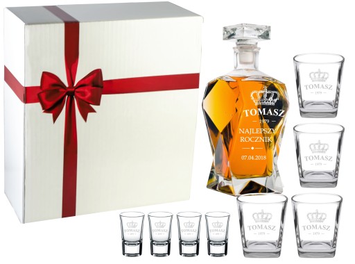 KARAFKA Z GRAWEREM + 4 KIELISZKI Z GRAWEREM + 4 SZKLANKI Z GRAWEREM W PUDEŁKU PREZENTOWYM