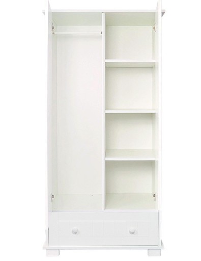 - Po środku pionowa przedziałka, prawa strona z półeczkami, lewa z wieszakiem
