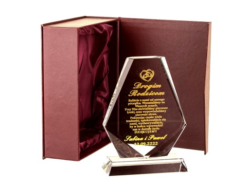 MODEL S0058 - STATUETKA KRYSZTAŁ z ETUI - podziękowanie dla rodziców – GRAWER