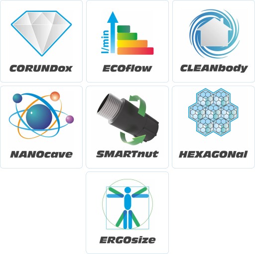 - NANOcave – mikrozagłębienia, dzięki którym smar w głowicy nie wypłukuje się i głowica działa gładko przez wiele lat