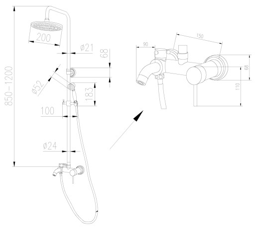 - wysokość od szczytu kolumny prysznicowej do deszczownicy: 16 cm