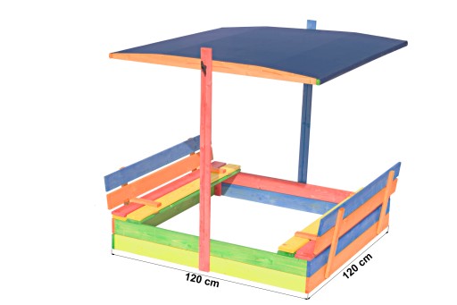 PIASKOWNICA DREWNIANA ZAMYKANA Z DASZKIEM DLA DZIECI - 120 x120 BRĄZOWA LUB KOLOROWA