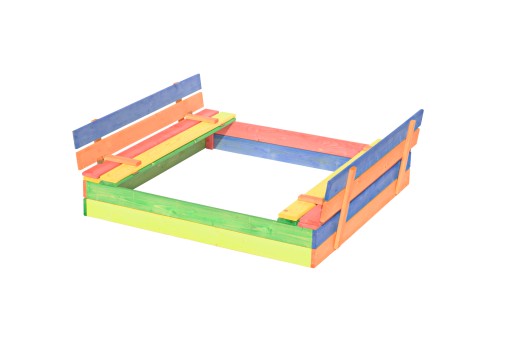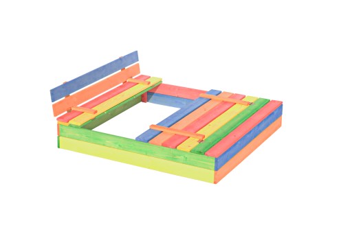 Piaskownica jest częściowo zmontowana (zmontowane są elementy z zawiasami czyli siedziska), część sprzedawców wysyła deski oraz zawiasy i śruby oddzielnie.