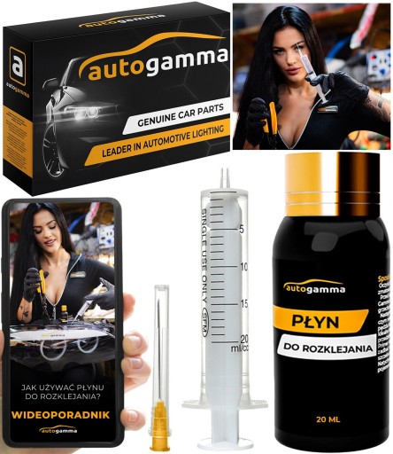 Preparat jest płynem posiadającym uniwersalne zastosowanie. Można go stosować we wszystkich lampach, w których występuje zarówno twardy czarny jak i miękki klej, m.in w reflektorach marek:
