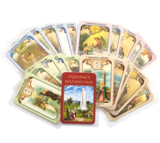 W zestawie 20 szt kart. Wszystkie karty różańcowe są laminowane.