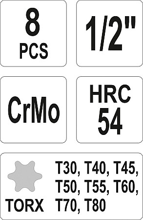 TRZPIENIOWE KLUCZE UDAROWE 1/2'' TORX 8szt. Yato