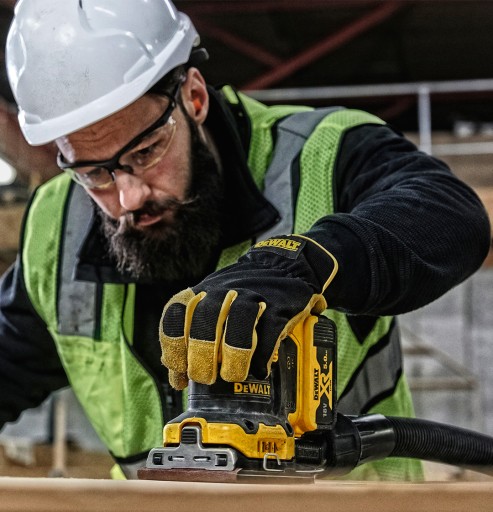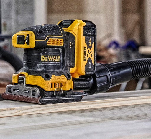 Szlifierka oscylacyjna ze stopą prostokątną DeWalt z silnikiem bezszczotkowym 18V pozwala na szybką i dokładną obróbkę materiału nawet w bardzo twardym drewnie.