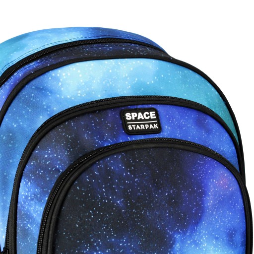 Plecak STARPAK to najważniejsza część wyprawki szkolnej. Plecak szkolny STARPAK jest wykonany z mocnego materiału poliestrowego 600D specjalnie powlekanego wodoodporną warstwą. Mocne szwy i przeszycia, wytrzymałe zamki błyskawiczne gwarantują, że plecak przetrwa w każdych warunkach jakie może mu stworzyć młody człowiek. Plecak składa się z dużej bardzo pojemnej komory i 2 przednich kieszeni.