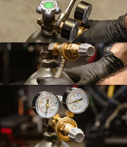 Reduktor ciśnienia z gwintem pasującym do butli z argonem lub dwutlenkiem węgla (CO2). Najczęściej stosowany w spawalnictwie podczas spawania migomatem, półautomatem lub spawarkami TiG, które wymagają osłony gazowej w postaci argonu lub dwutlenku węgla. Wyposażony jest w dwa manometry - pierwszy wskazuje ciśnienie w butli, drugi przepływ gazu na minutę.