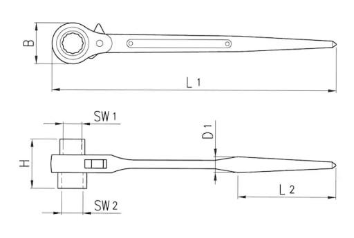 - wyjątkowo długie ramie pomaga w odkręcaniu zapieczonych połączeń, a zaostrzona końcówka służy do podważania i rozsuwania demontowanych elementów