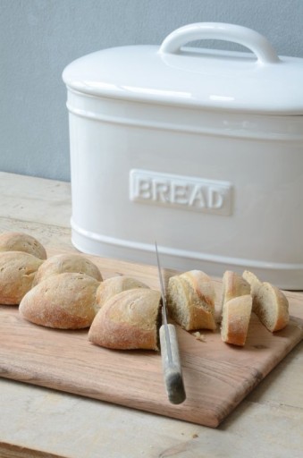 Chlebak ceramiczny w białym kolorze z wypukłym napisem " BREAD " duńskiej marki Ib Laursen.