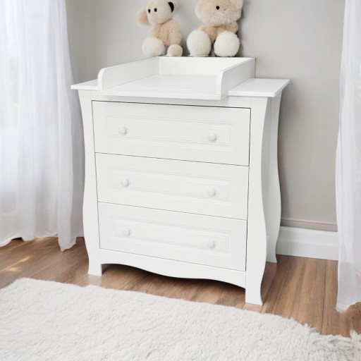 - Posiada trzy pojemne głębokie szuflady w których napewno pomieści się wiele rzeczy maluszka