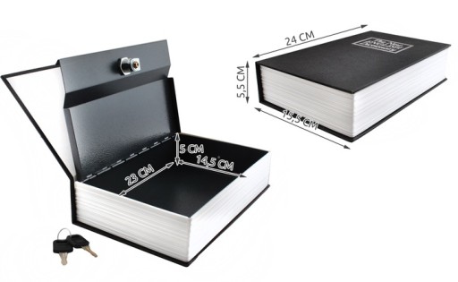 - STALOWA KASETKA WEWNĄTRZ - zewnętrzna obudowa świetnie imituje prawdziwą książkę, a w środku znajduje się wykonane ze stali pudełko, które jest trudne do sforsowania nawet w przypadku rozpoznania, że jest to sejf
