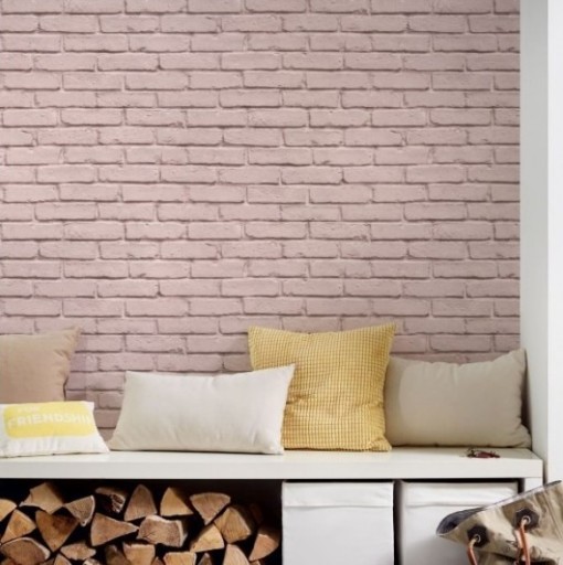 Пастельные, Розовые ОБОИ - под кирпич, 3D стена - AS Cre..