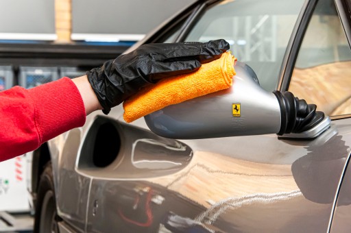 4️⃣ W skład opakowania wchodzi mikrofibra, którą powinno się nanosić cienką warstwę preparatu równomiernie na karoserii.