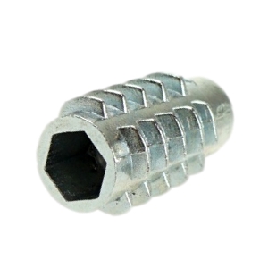 - Mufa do drewna posiada nacięcie na klucz imbusowy o rozmiarze 6 mm w celu łatwiejszego wkręcenia w wywiercony otwór.