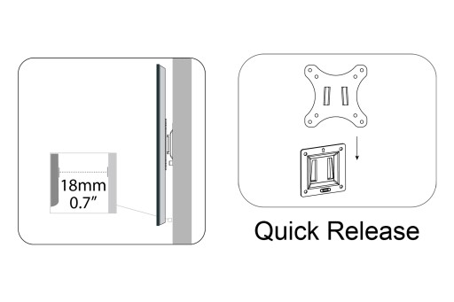 Niewielka odległość od ściany (tylko 18 mm) pozwala na eleganckie zawieszenie płaskiego monitora.