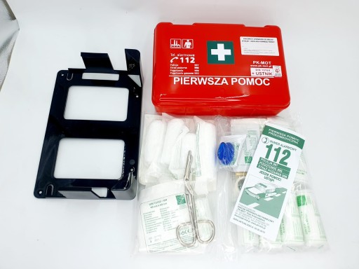 Komplet elementów jest zgodny z normami UE i służy do udzielania pierwszej pomocy w nagłych wypadkach i urazach.