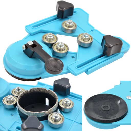 Prowadnica ułatwiająca wykonywanie otworów za pomocą otwornic, koronek i wierteł w płytkach ceramicznych, gresie, glazurze, szkle i innych materiałach.