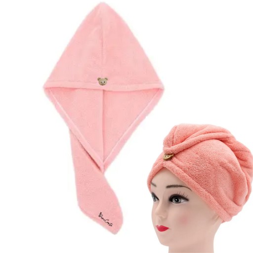 Ręcznik dobrze i pewnie trzyma się na głowie. Jest łatwy do założenia - posiada praktyczny guzik, dzięki któremu turban jest stabilny nawet przy długich włosach.