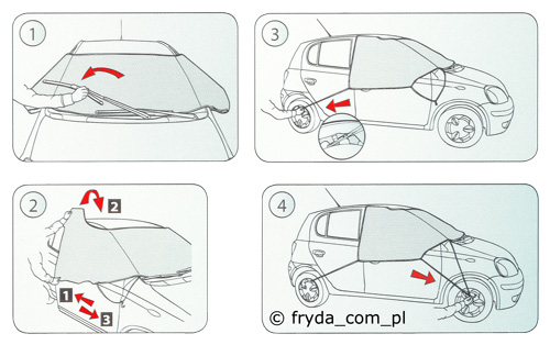 - Oszczędza czas i zdrowie - nikt nie lubi wcześniej wstawać aby przygotować samochód do drogi. Zamiast stać na mrozie i skrobać przednią szybę lub odśnieżać ją za pomocą miotły wystarczy zdjąć osłonę z szyby
