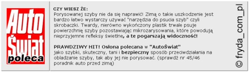 - To naprawdę działa - osłona przeciwszronowa doskonale zapobiega osadzaniu się na szybie szronu i lodu!
