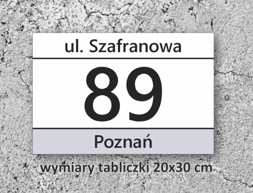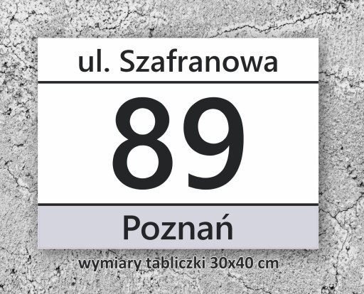 Tabliczka wykonana jest z PVC grubości 5 mm.