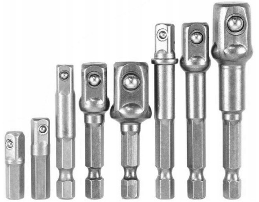 - Zestaw adapterów do wkrętarki: 1/4" 3/8" 1/2"