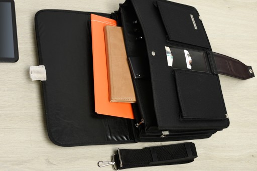 Jest świetnie zorganizowana, ma rozbudowane biuro. Aktówka ma również doczepiany na karabińczyki pasek, wykonany z przyjemnej eko skóry, który jest regulowany w zakresie 75-135 cm.