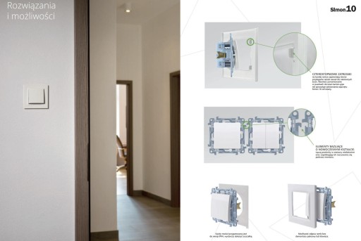 Simon 10 to seria modułowa występująca w kolorze białym oraz kremowym. Zaawansowane tworzywo PC z dodatkami uszlachetniającymi i antystatycznymi pozwala zachować trwałość kolorów.