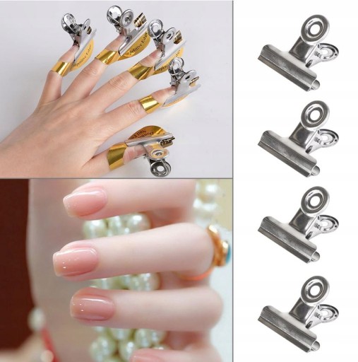 Metalowy klips służący do zaciskania i formowania krzywej C paznokci żelowych i akrylowych na szablonie lub tipsie.