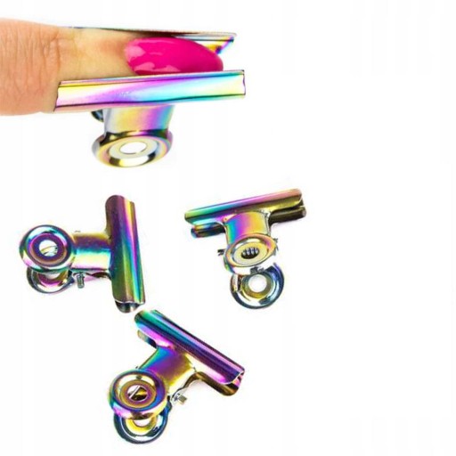 Metalowy klips służący do zaciskania i formowania krzywej C paznokci żelowych i akrylowych na szablonie lub tipsie.
